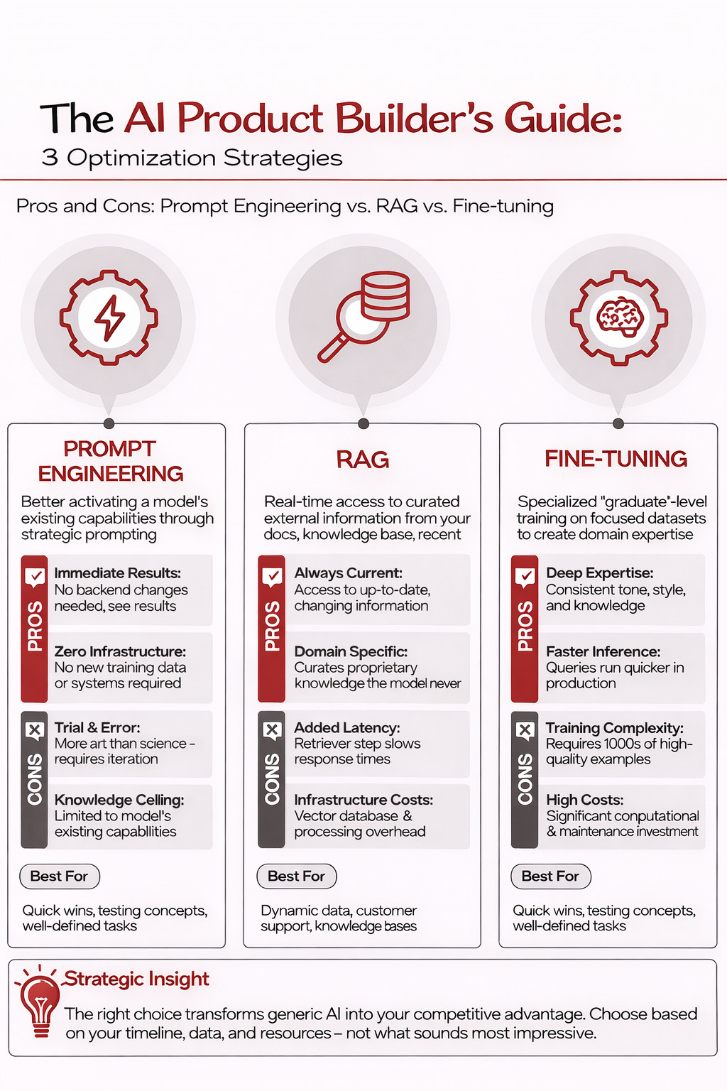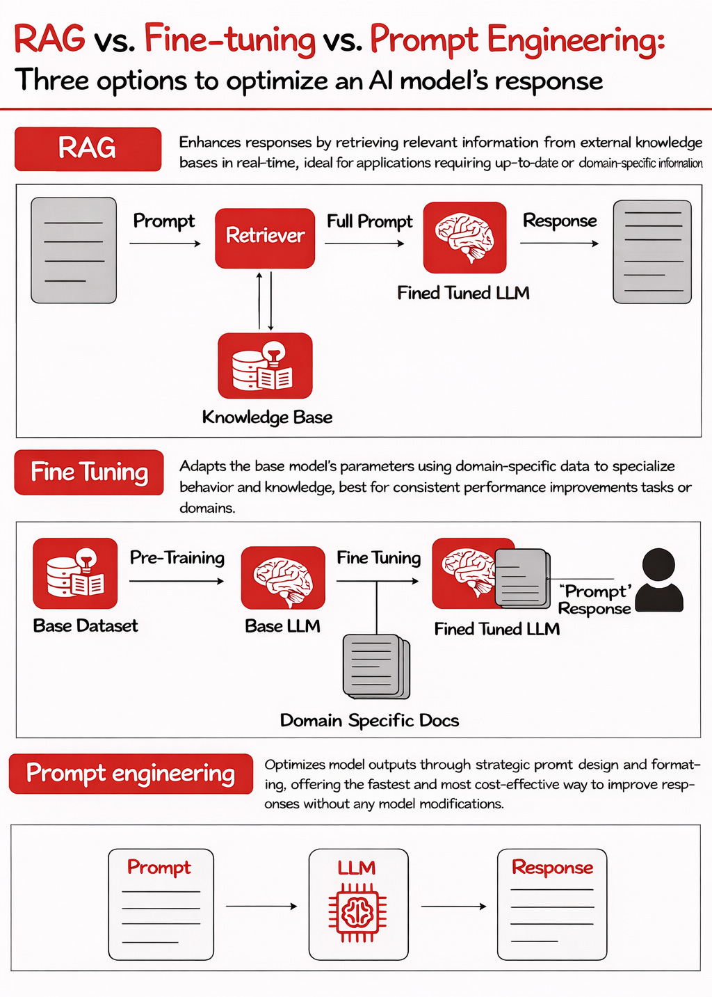 The truth? There’s a strategic choice between Prompt Engineering, RAG, and Fine-Tuning.