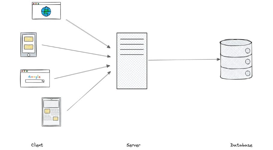 Client: This is what your users interact with directly. Examples include websites, mobile apps, smart devices like Tesla cars, or even smart fridges.