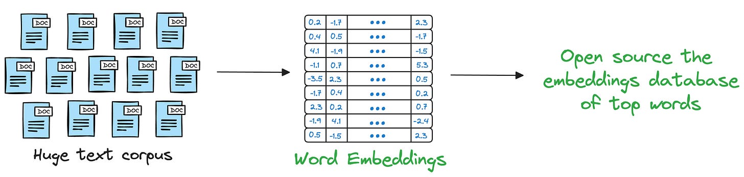 Essentially, someone would train embeddings on, say, 100k, or 200k common words using deep learning techniques and open-source them.