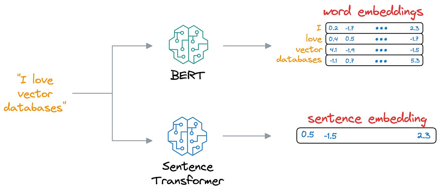 Essentially, the SentenceTransformer model takes an entire sentence and generates an embedding for that sentence.