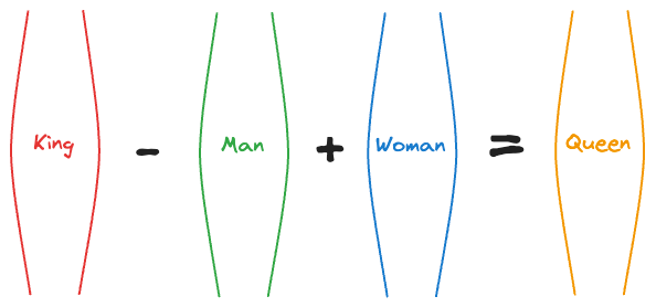 For instance, at that time, an experiment showed that the vector operation (King - Man) + Woman returned a vector near the word Queen.