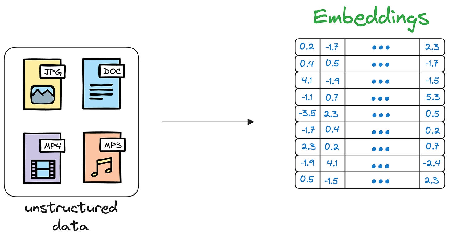 This numerical vector is called an embedding, and the model is trained in such a way that these vectors capture the essential features and characteristics of the underlying data.